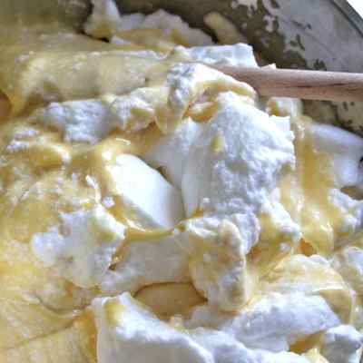 Seguire il procedimento come indicato nella Vanilla Chiffon: http://www.eatwithmarco.com/index.php/vanilla-chiffon/. Unire delicatamente il cocco alla fine di tutto il procedimento.
