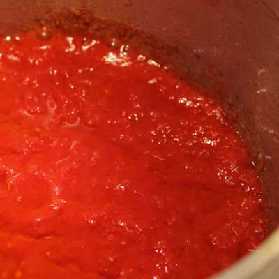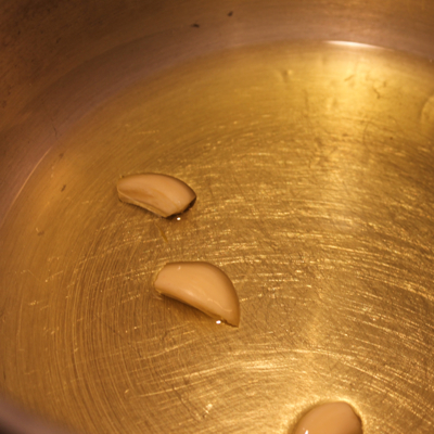 Make the tomato sauce. Fry the garlic with the olive oil.